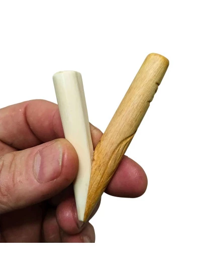 Produzido artesanalmente, com acabamento natural. Combinação de Palo Santo e osso, materiais de alta vibração. Tamanho anatômico, ideal para uso individual. Leve, resistente e com aroma suave do Palo Santo.
