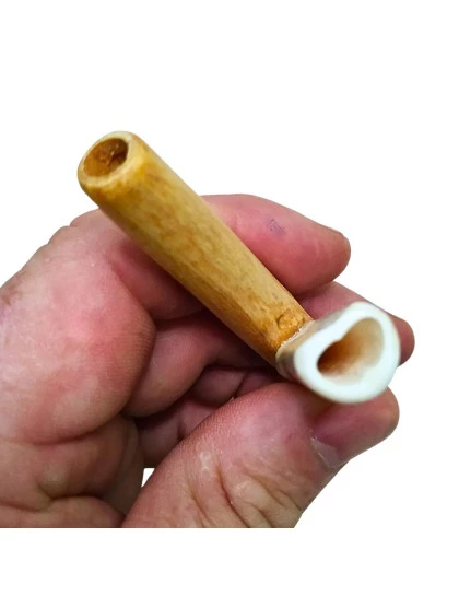 Uso ritual: O Kuripe é o aplicador em formato de “V” utilizado para autoaplicação do Rapé, permitindo que a medicina alcance de forma equilibrada ambos os canais nasais, promovendo centramento, clareza mental e conexão espiritual. Cada peça é única — as variações de cor, textura e formato fazem parte da autenticidade e energia do trabalho artesanal.