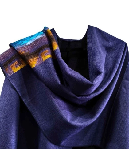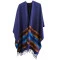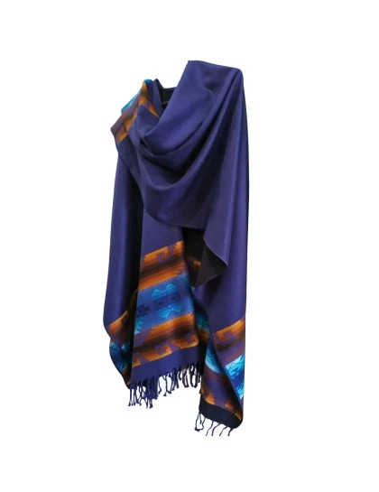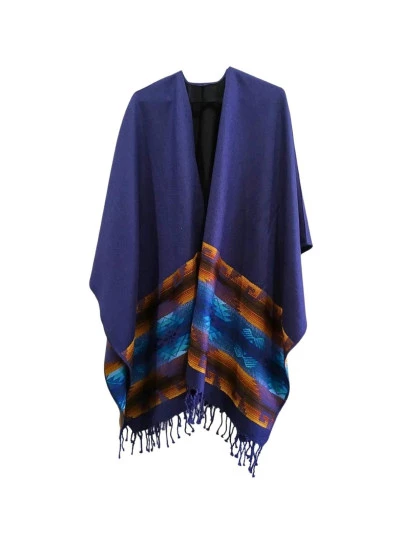 DESCRIÇÃO: Poncho Aberto Lakota de lã super confortável, quente e com excelente acabamento. Com tecido colorido de aguayo, é ótimo para aquecer nos dias frios. Seu acabamento é quadrado e com franja em sua volta.