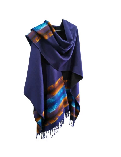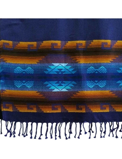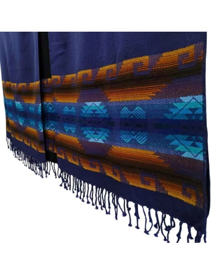 O tecido colorido confere ao poncho uma aparência distinta e vibrante. Com cores e padrões da tradição indígena norte-americana, simbolizaa a identidade e a diversidade dessa região.