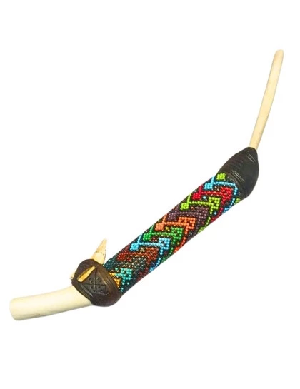 O Tepi para Rapé Osso Kene de Miçanga é uma peça artesanal única, feita de osso, adornada com miçangas coloridas ao redor. Cada detalhe é cuidadosamente elaborado à mão, incluindo detalhes de cristal e osso, adicionando um toque especial ao design.